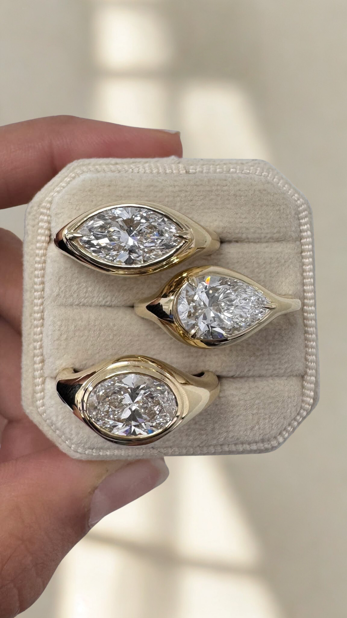 Mixed-Shape Bezel Cigar Cocktail Rings