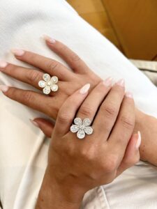 Precious Stone Pear-Leaf Flower Rings